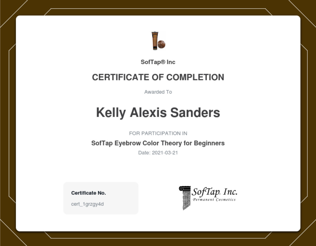 I am a trained and certified SofTap permanent makeup artist. Other certifications include SofTap ombre brows, SofTap GenuLine hair strokes, SofTap color theory, blood Bourne pathogens and Li-ft pigment removal.